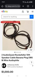 Good day guys up for sale Audioquest Rockefeller biwired speakers cables 2X3.05m(10ft)in mint condition the ultimate high and from Audioquest