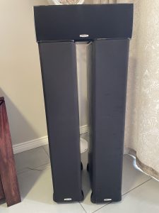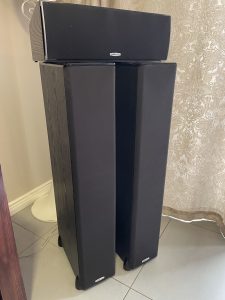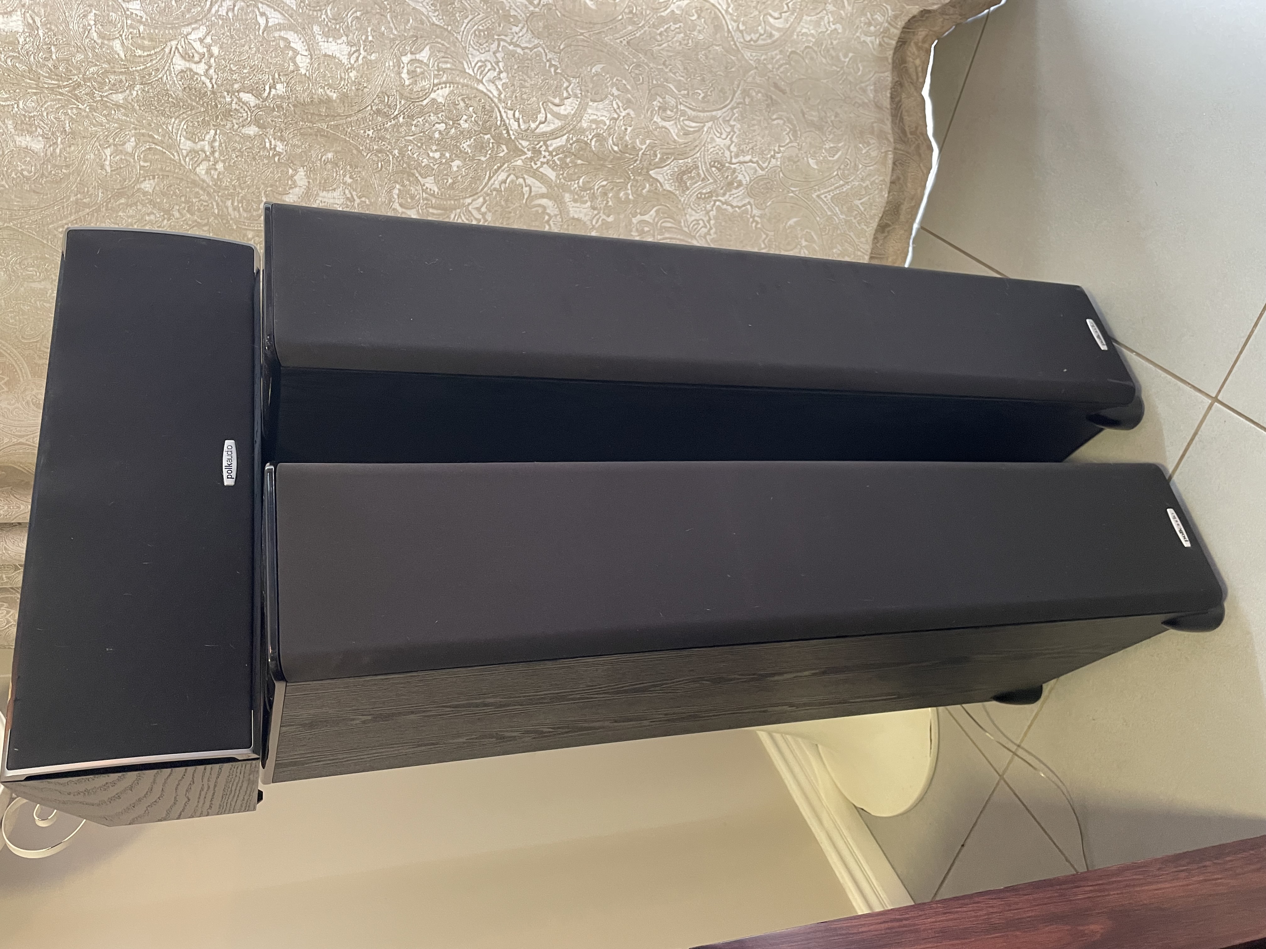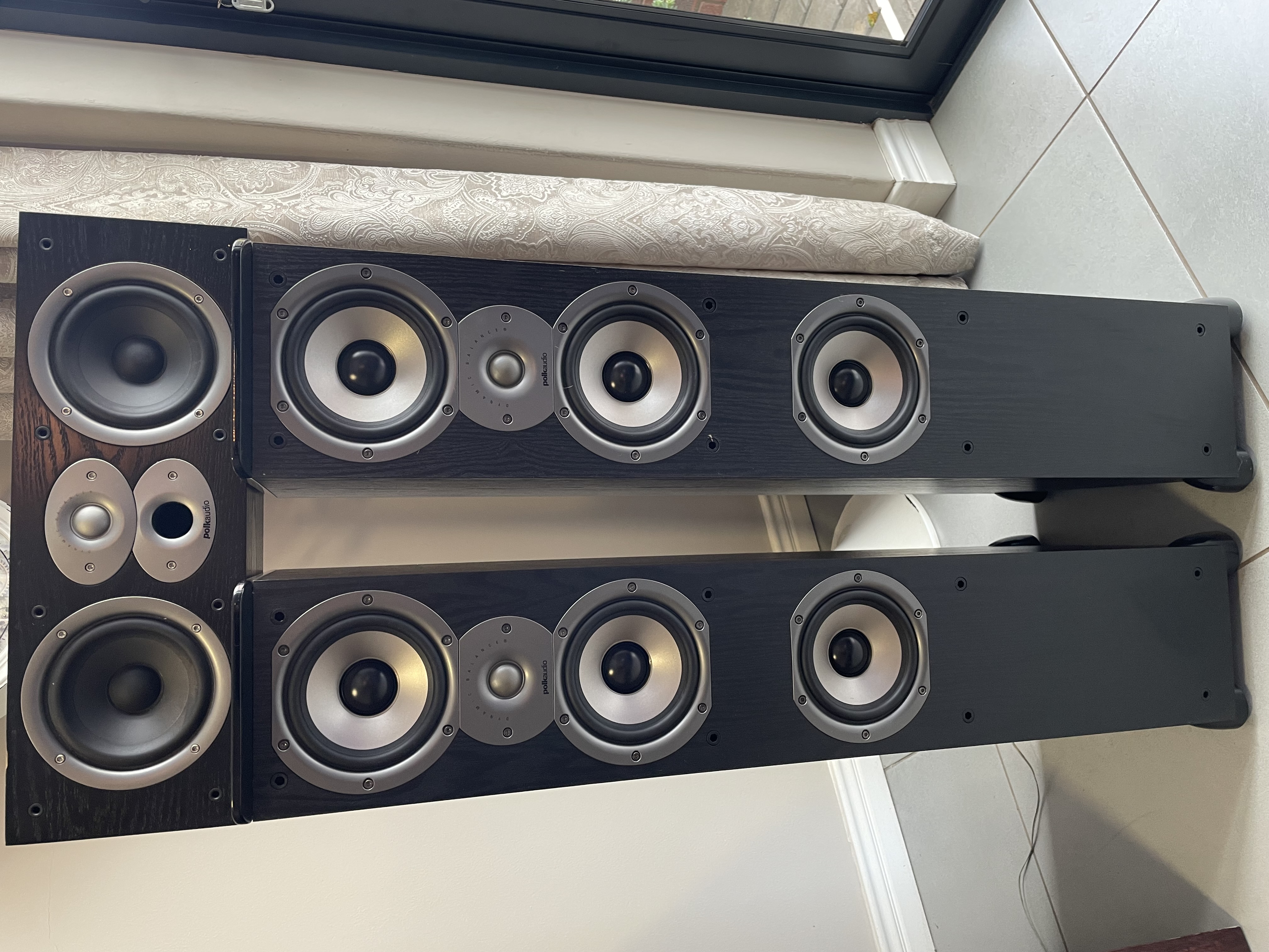 Black PolkAudio tsi400 speaker pair, including centre channel speaker, good condition