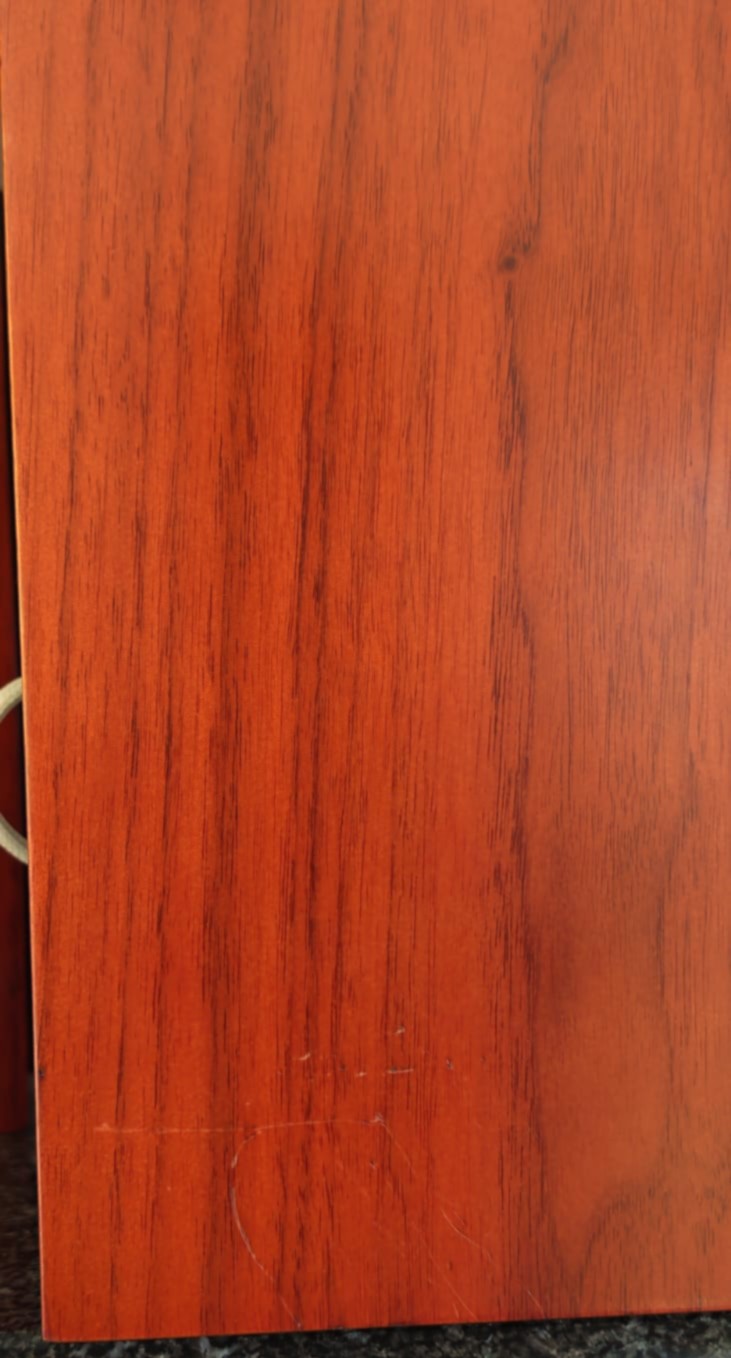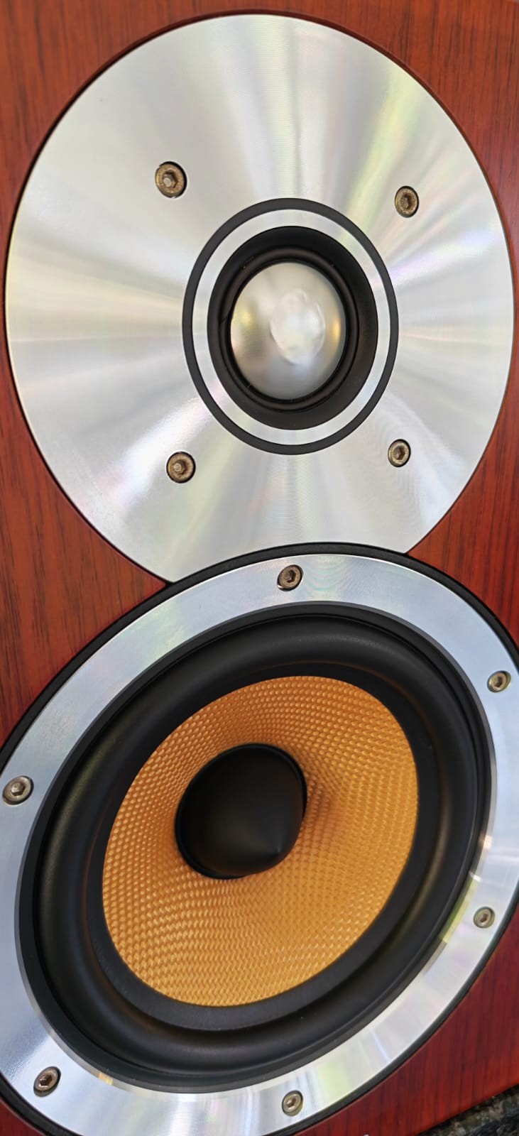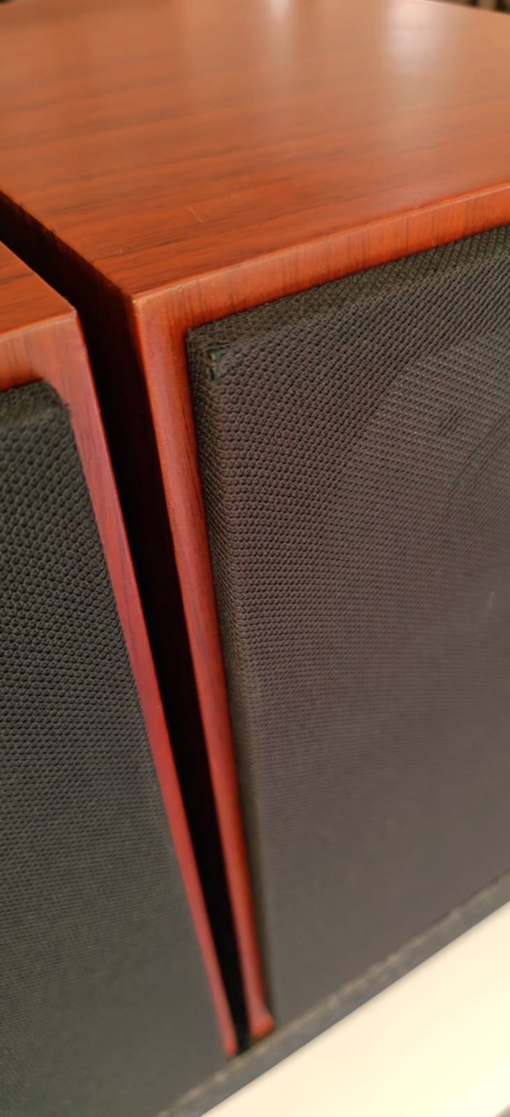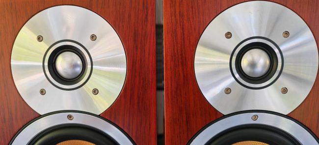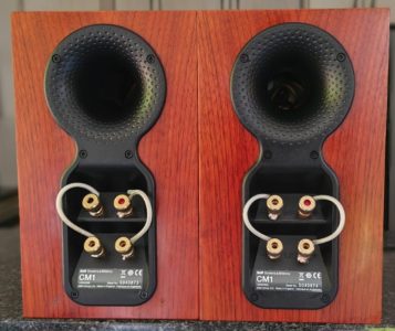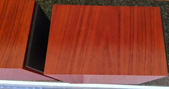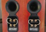 Overall very good condition, barring small scratches on the one and indentations on the other. Tiny hole in one grill cover’s corner. All of these are only visible close up. No bridging plates but I used QED Solver Anniversary speaker cable to connect the LF & HF.