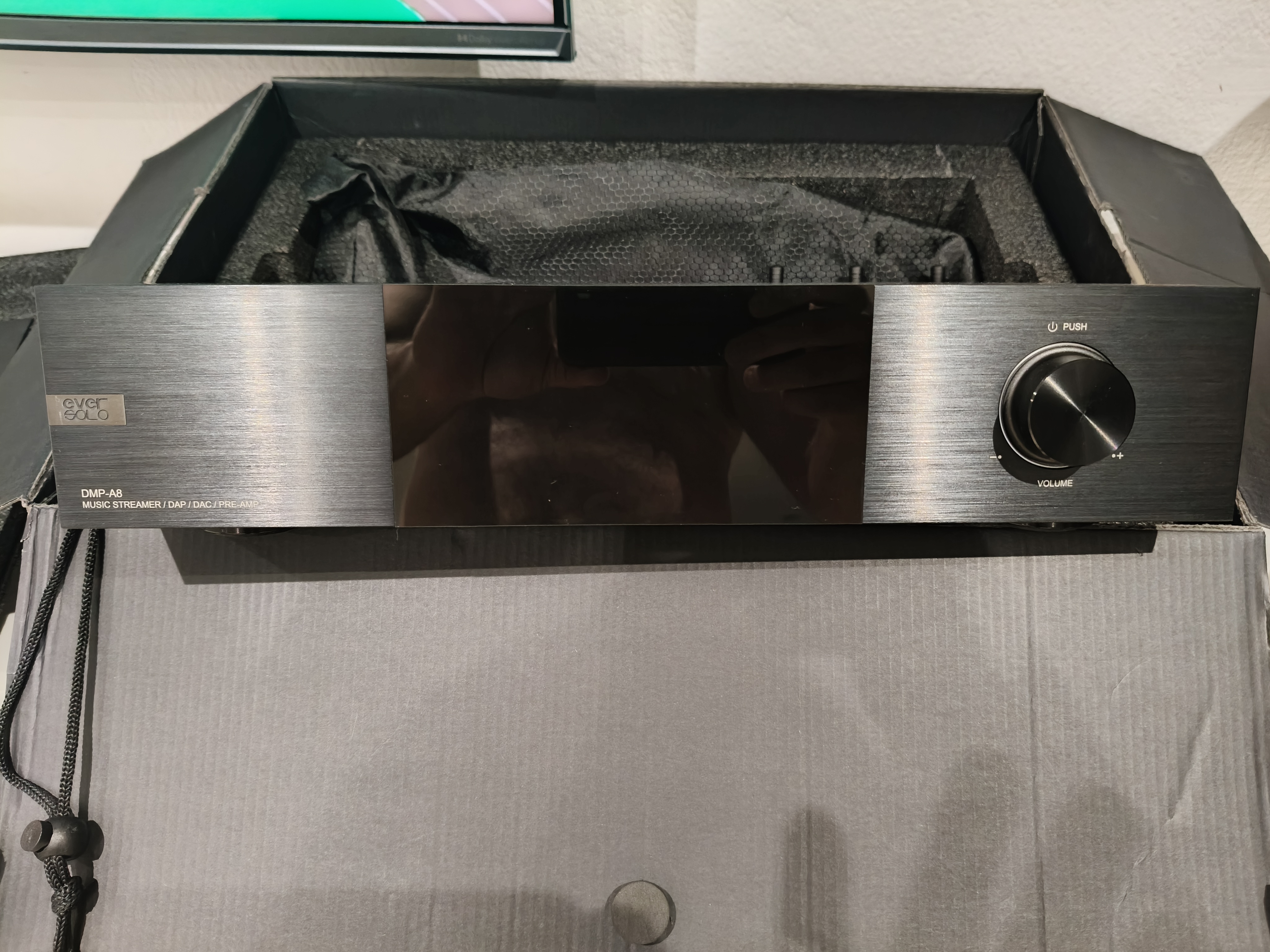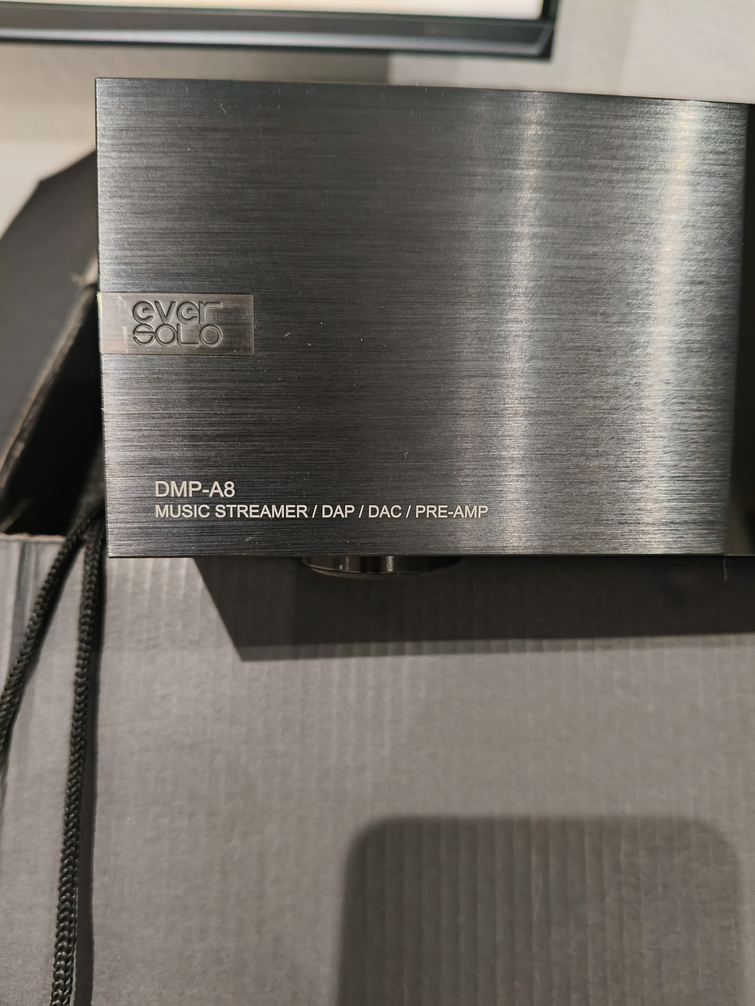 Hi guys up for grab the boss the Eversolo DMP-A8 is a flagship high-fidelity audio device that functions as an all-in-one network streamer, DAC, digital-to-digital converter (DDC), and balanced analog preamplifier. It is highly regarded by audiophiles for its “Velvet Sound” AKM DAC architecture, robust R2R analog volume control, and extensive digital signal processing (DSP) capabilities(The Eversolo DMP-A8 is a flagship all-in-one network audio streamer, DAC, and preamplifier featuring the AKM “Velvet Sound” architecture and a fully balanced R2R analog volume control. It is distinguished from previous models by its dual power supply design and expanded analog connectivity.