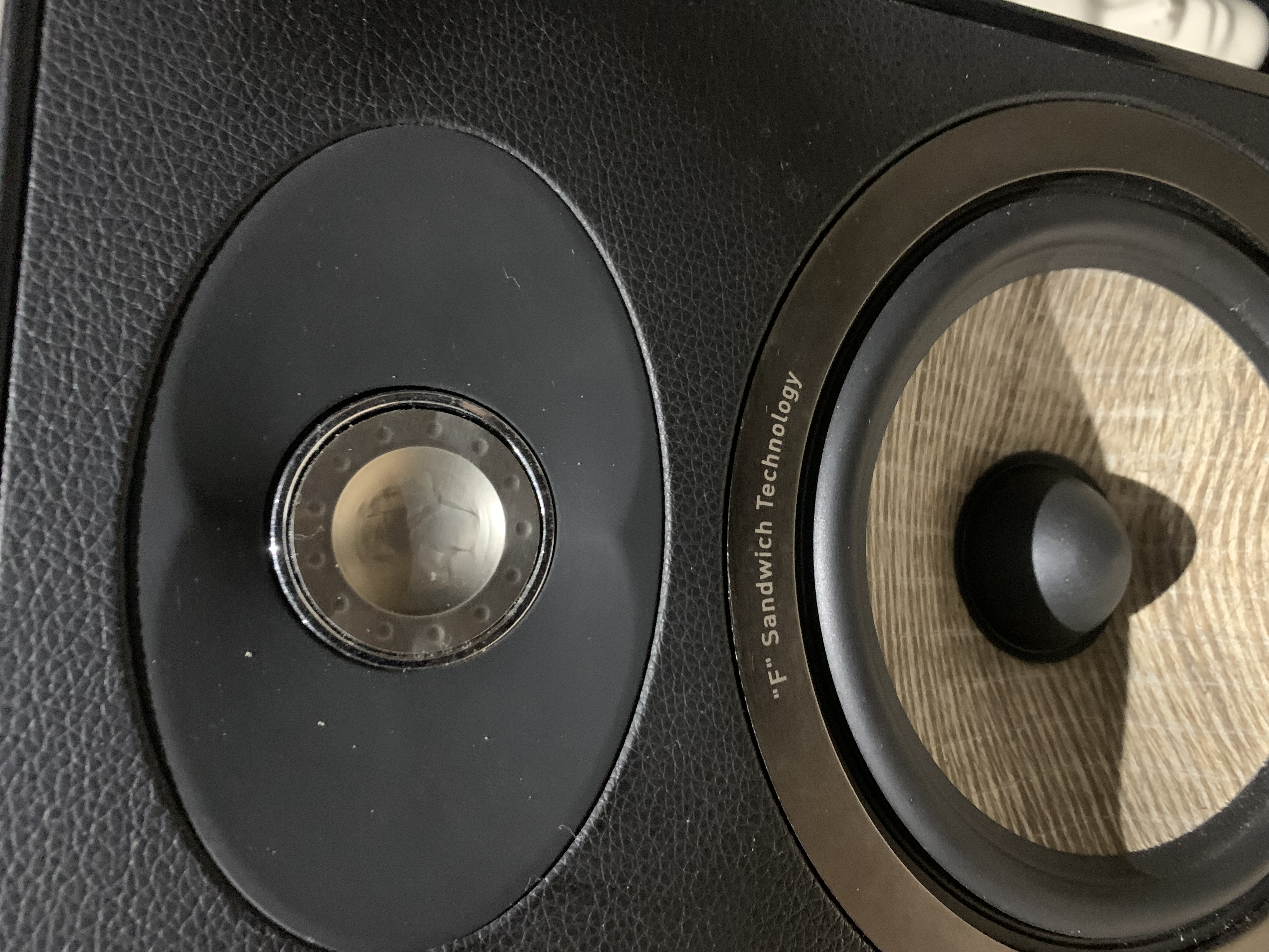 - One very minor cosmetic issue: slight creasing on one tweeter, but this has absolutely no effect on sound quality.