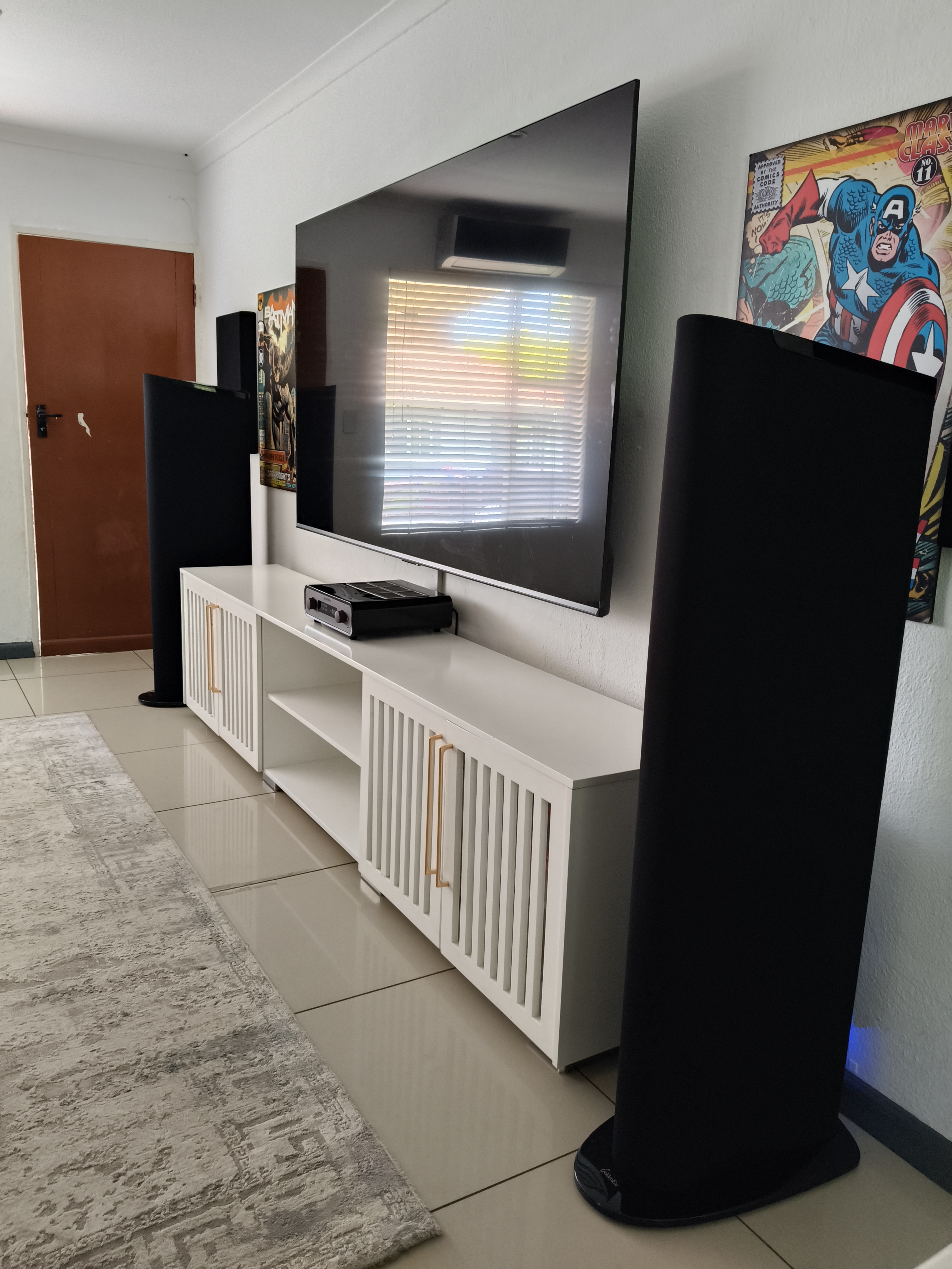 - Built-in Bass: Each tower contains three 5×9-inch quadratic sub-bass drivers, two 7×10-inch passive radiators, and a 1600-watt DSP-controlled amplifier.