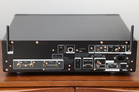 Versatile Playback: Plays standard CDs and supports high-resolution digital files (up to PCM 384 kHz/32 bit and DSD 11.2MHz) via USB-B or network.