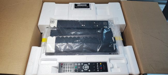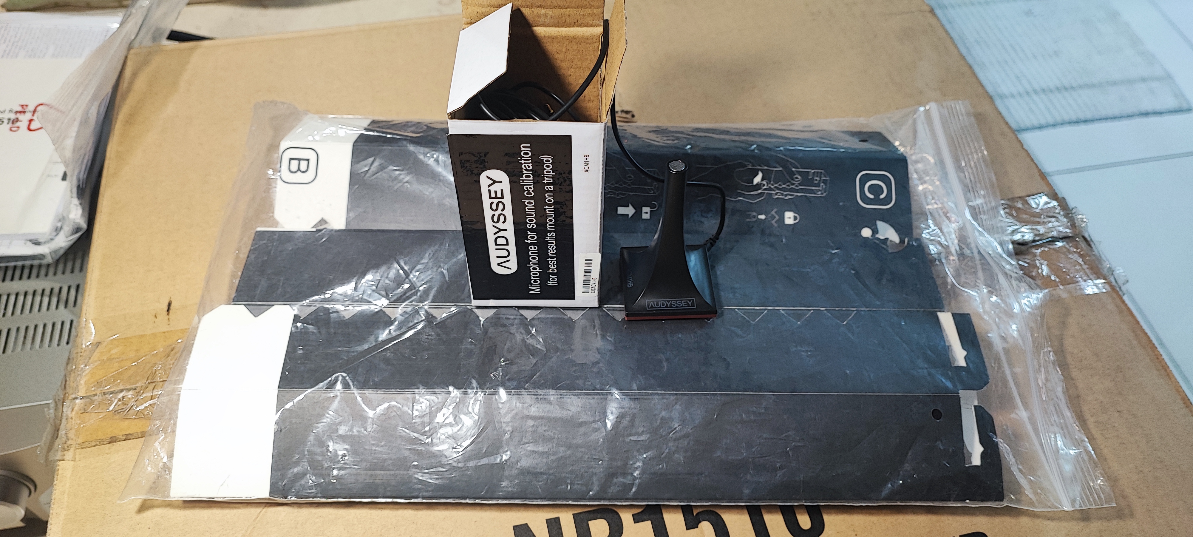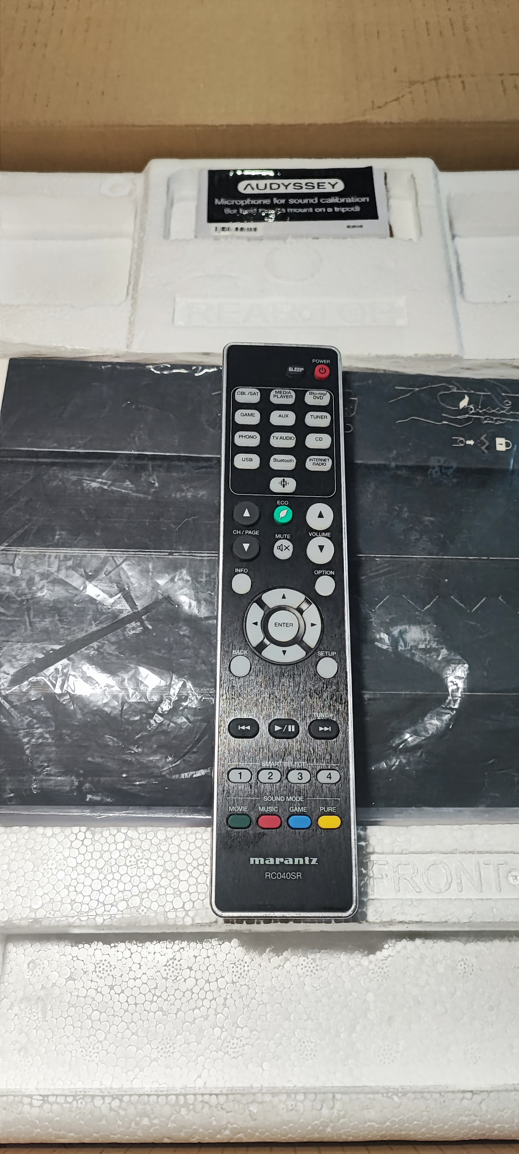 All accessories included, Remote, Audyssey mic and stand, Power cable, Instructions booklet.