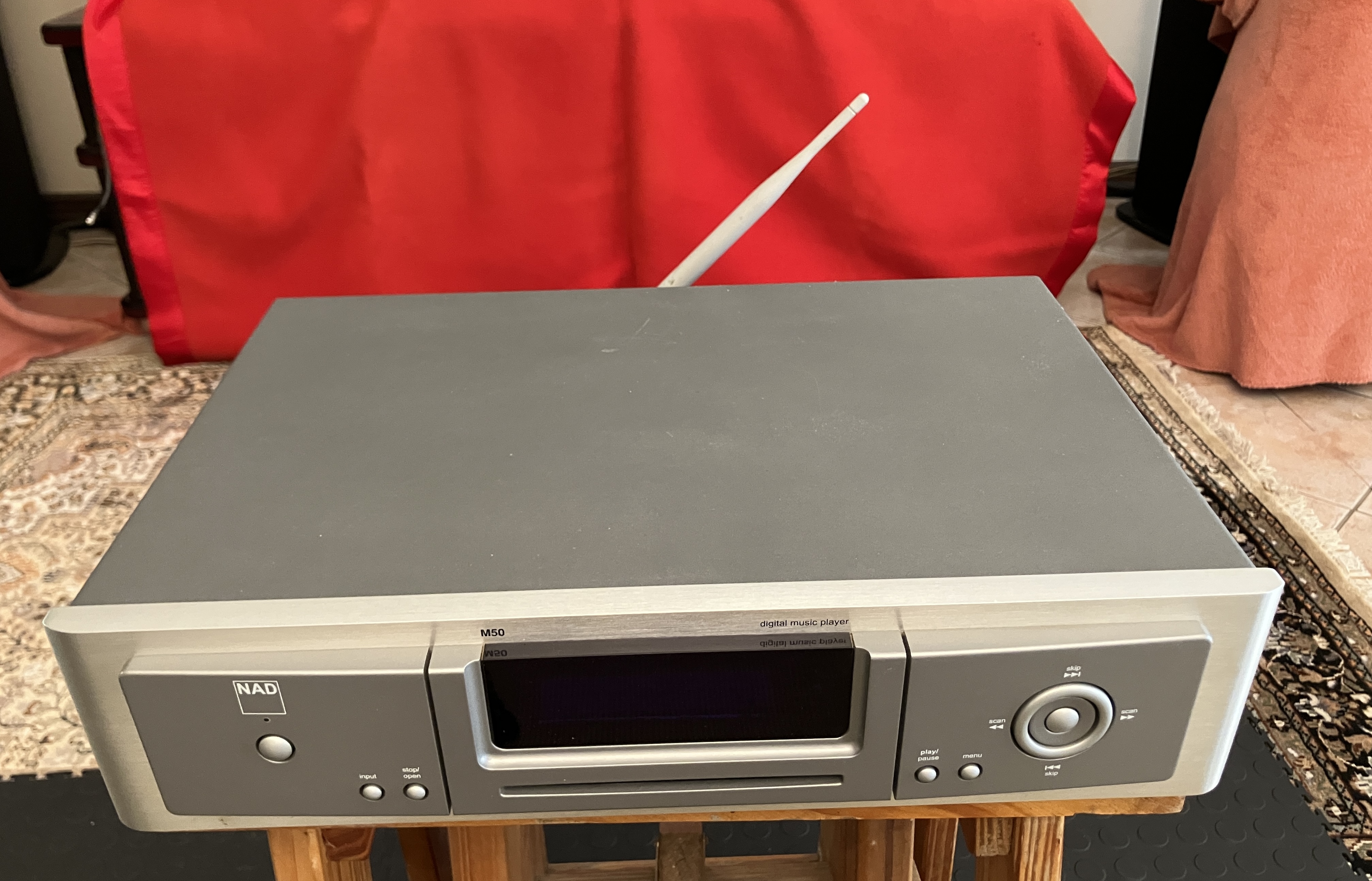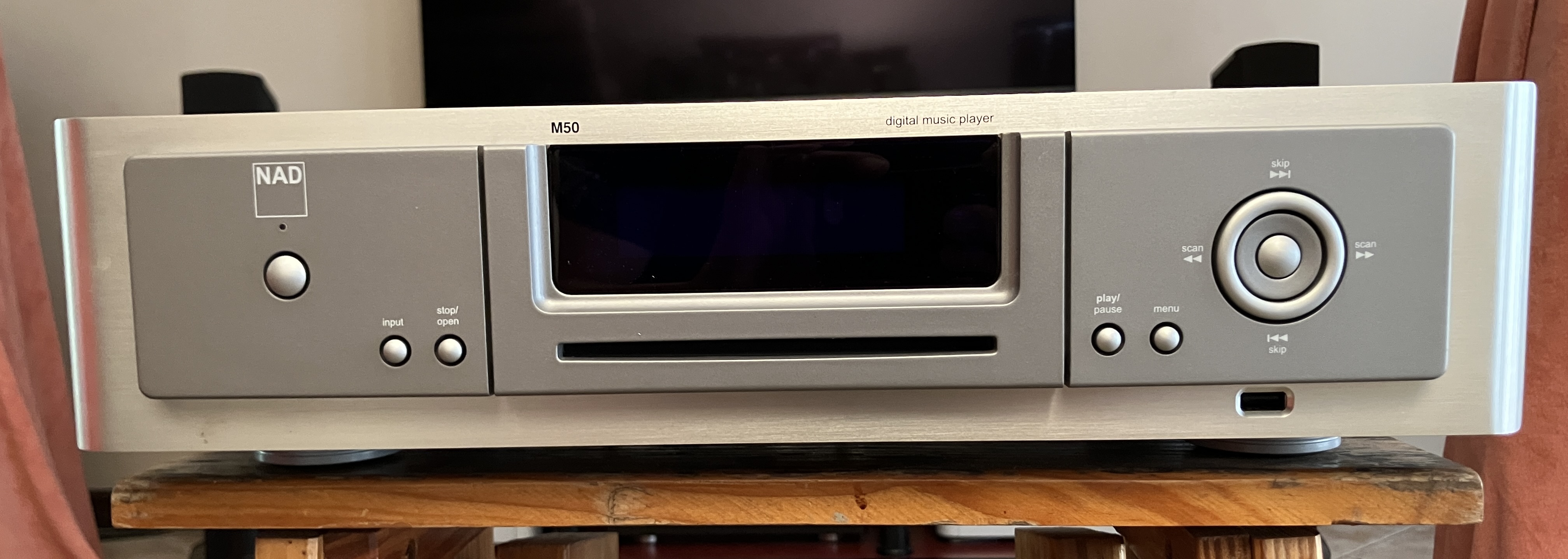 NAD M50 Digital Music Player. It plays CDs, it streams via NAD’s BluOs and it’s roon ready. It was bought as part of a second system which is no longer needed.  It comes with it box and remote control.