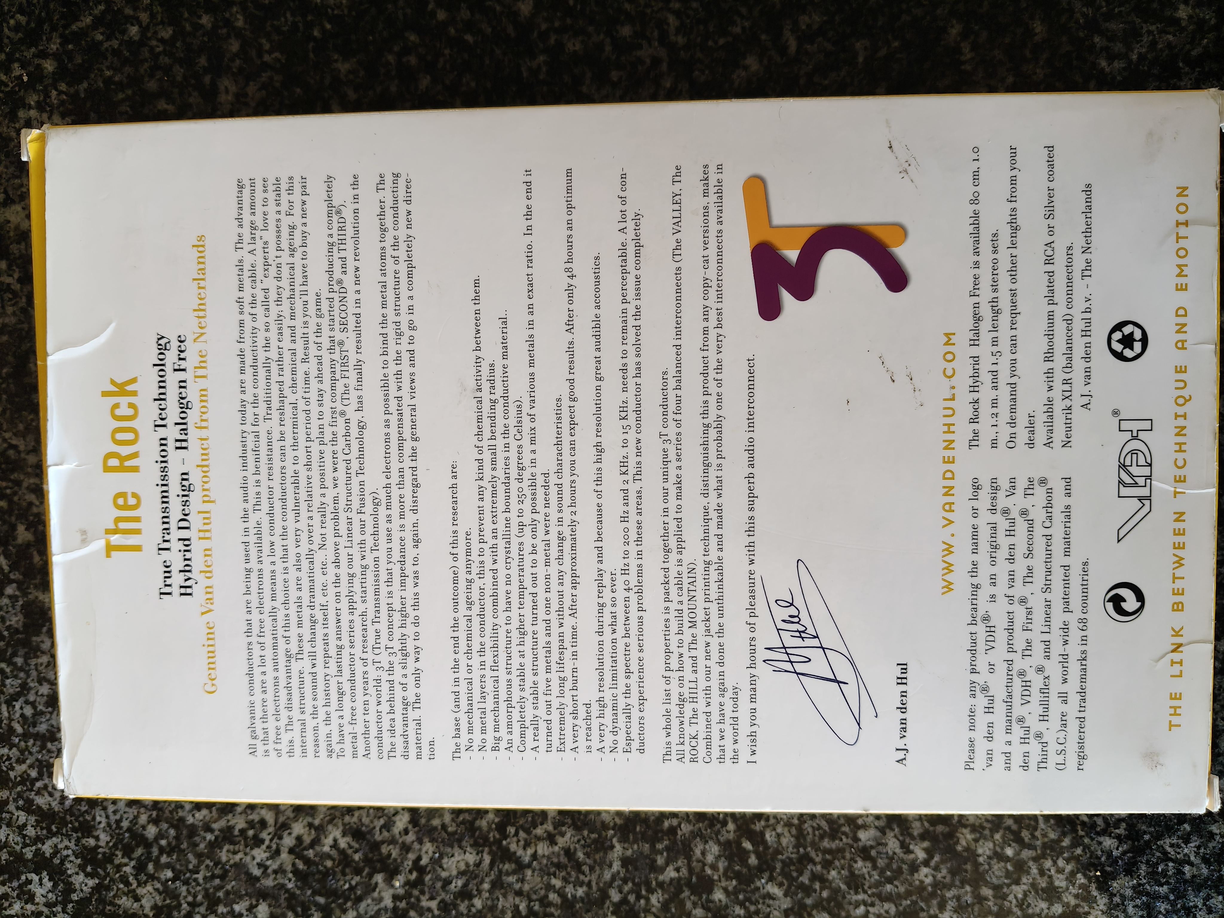 2. Van den Hul – The Rock Hybrid Halogen free analog (rca) cable pair (1m length) for R5000.