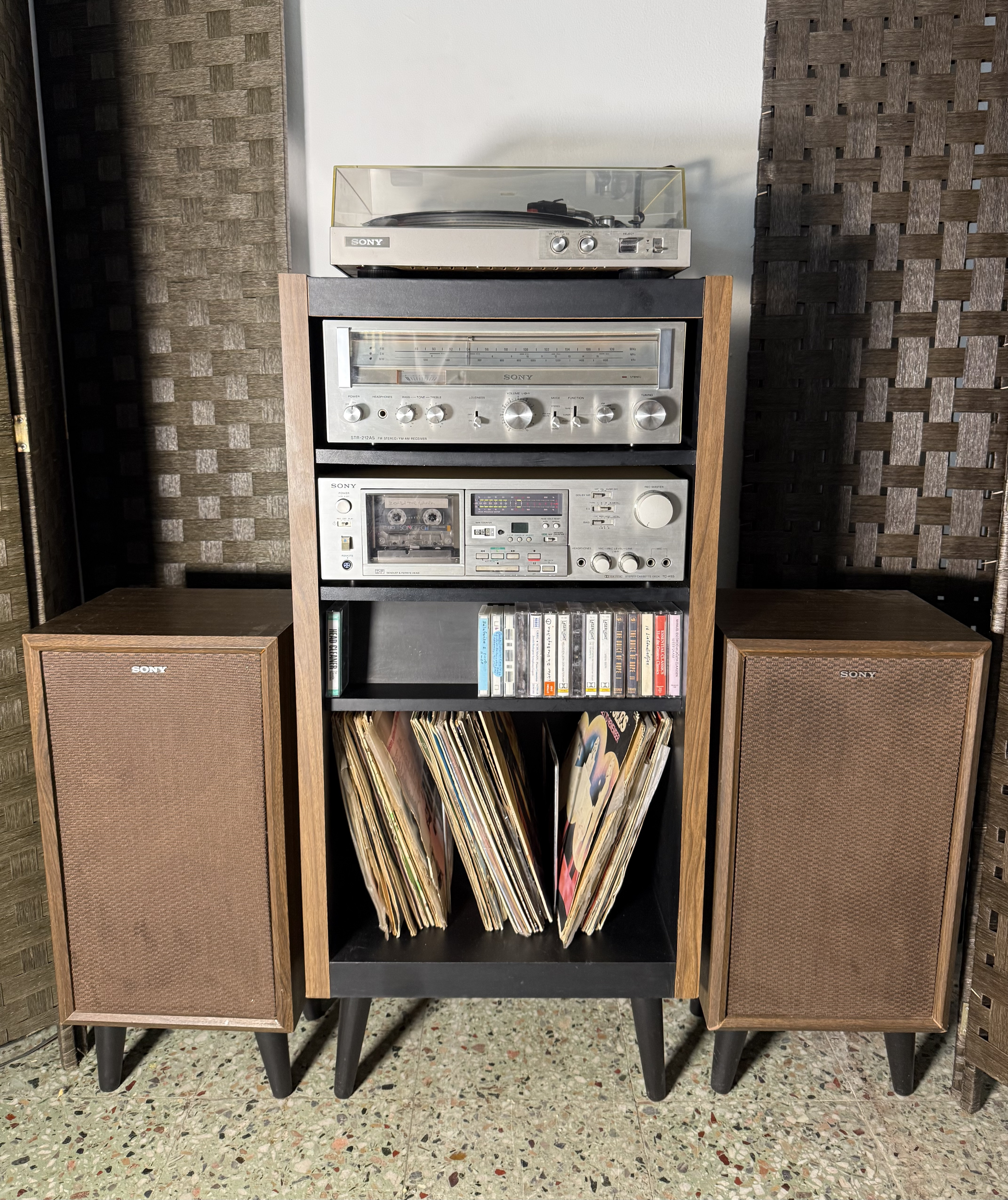 • Sony SS-630 Speakers: Original matching floor-standing speakers with classic brown textured grilles.